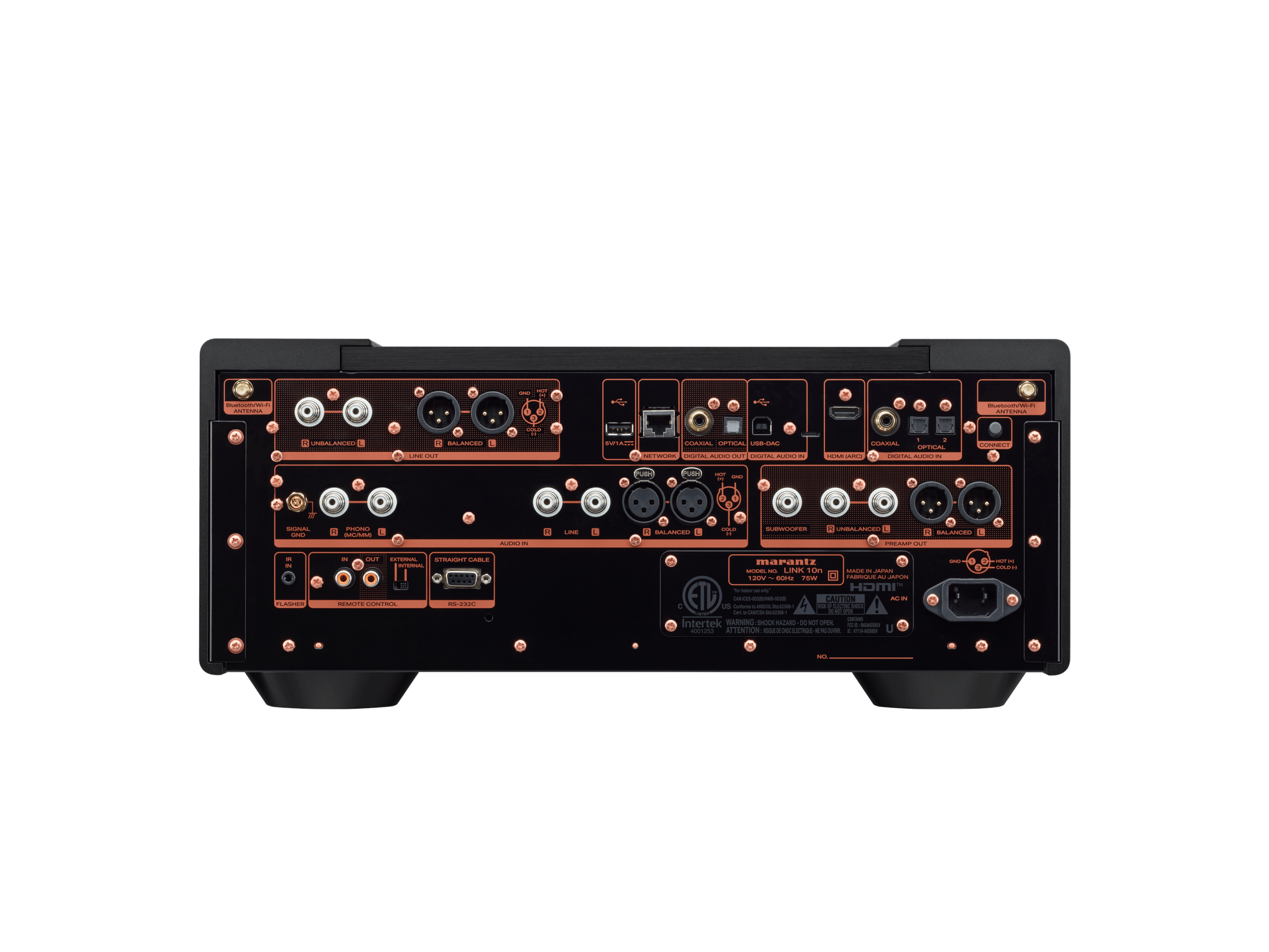 LINK 10n can act as a complete preamplifier front-end for your system, with all the functions of a modern high-end stereo system. Complete with single ended and balanced analog inputs, digital inputs, and a Marantz Premium Phono EQ supporting both MM and MC cartridges, it is also a fully featured front end for even the highest performance stereo systems.