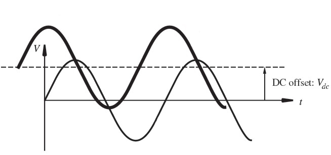 Fig.1) DC-komponent på växelspänningen (oproportionerlig illustrativ figur)